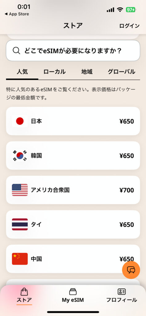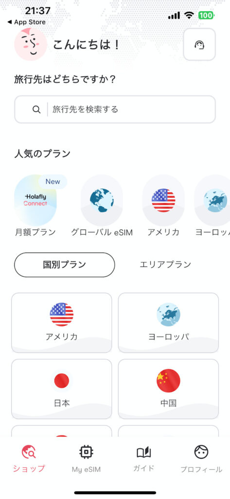 アプリを開くだけで、世界中のeSIMプランをサクッと検索&購入できちゃいます。