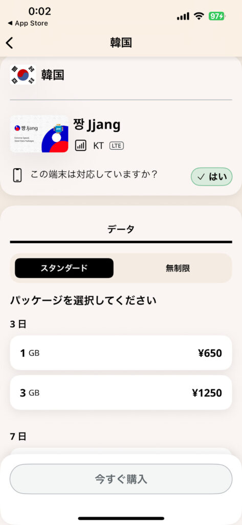 Airaloのほうが少しお値打ちって感じですね。また、Airaloは少ない容量という選択肢としてありかなって。