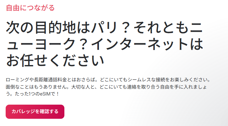 160カ国以上に対応。ヨーロッパ、アメリカ、アジア、オセアニアなど主要な旅行先をカバーしています。こちらから確認できます。