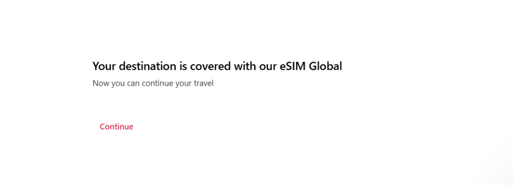 eSIMが対応していれば下記のような画面が表示されます。日本人の渡航先98%以上をカバーしています。非対応の場合はこの画面がでない仕様のようです。