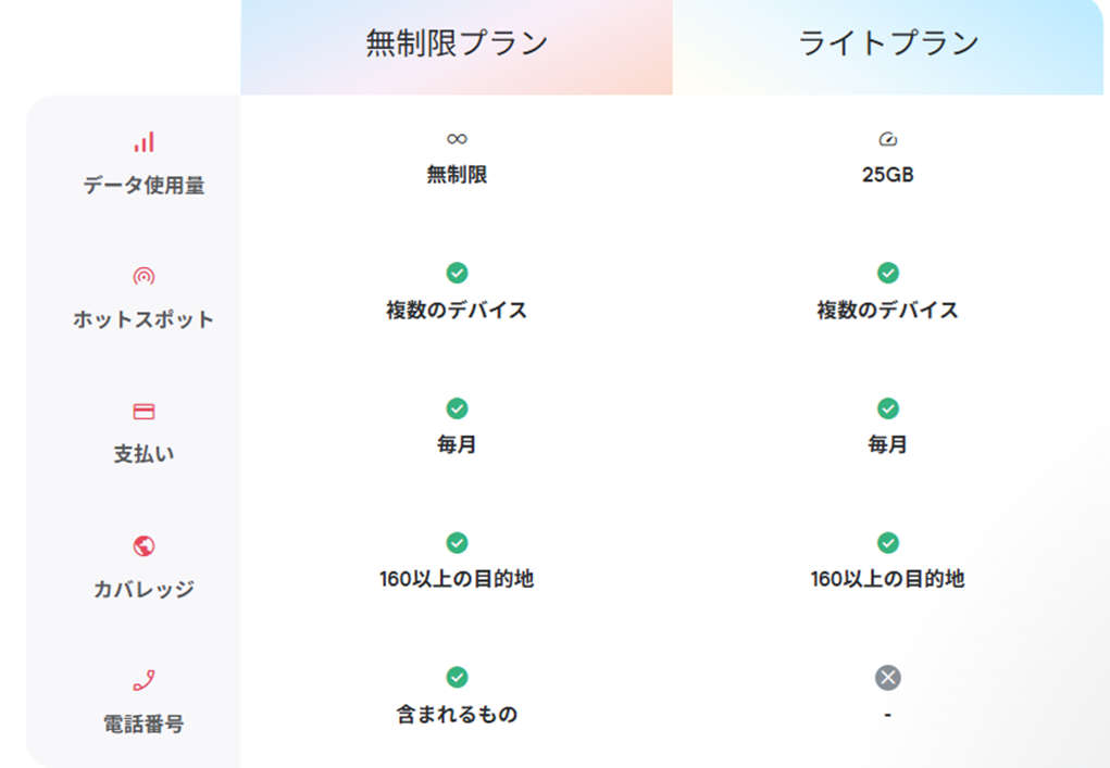 このプランは5Gに対応していて、テザリングもそのまま使えるんです。しかも追加料金なしでデータは無制限という気軽さ。困ったときには日本語で24時間サポートしてくれるので、いつでも相談できる安心感!