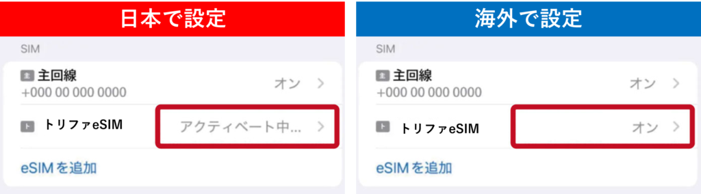 一方で、海外に到着してから設定すると、その場で現地の電波をすぐつかむので、待たずにそのまま通信が始まります。