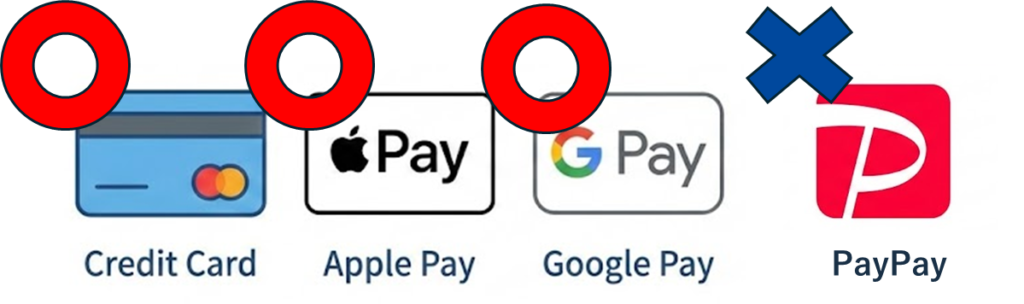 トリファeSIMは、通常は「クレジットカード」「Apple Pay」「Google Pay」「PayPay」での支払いに対応していますが、「PayPay」は日本国内での購入時のみ利用可能です。